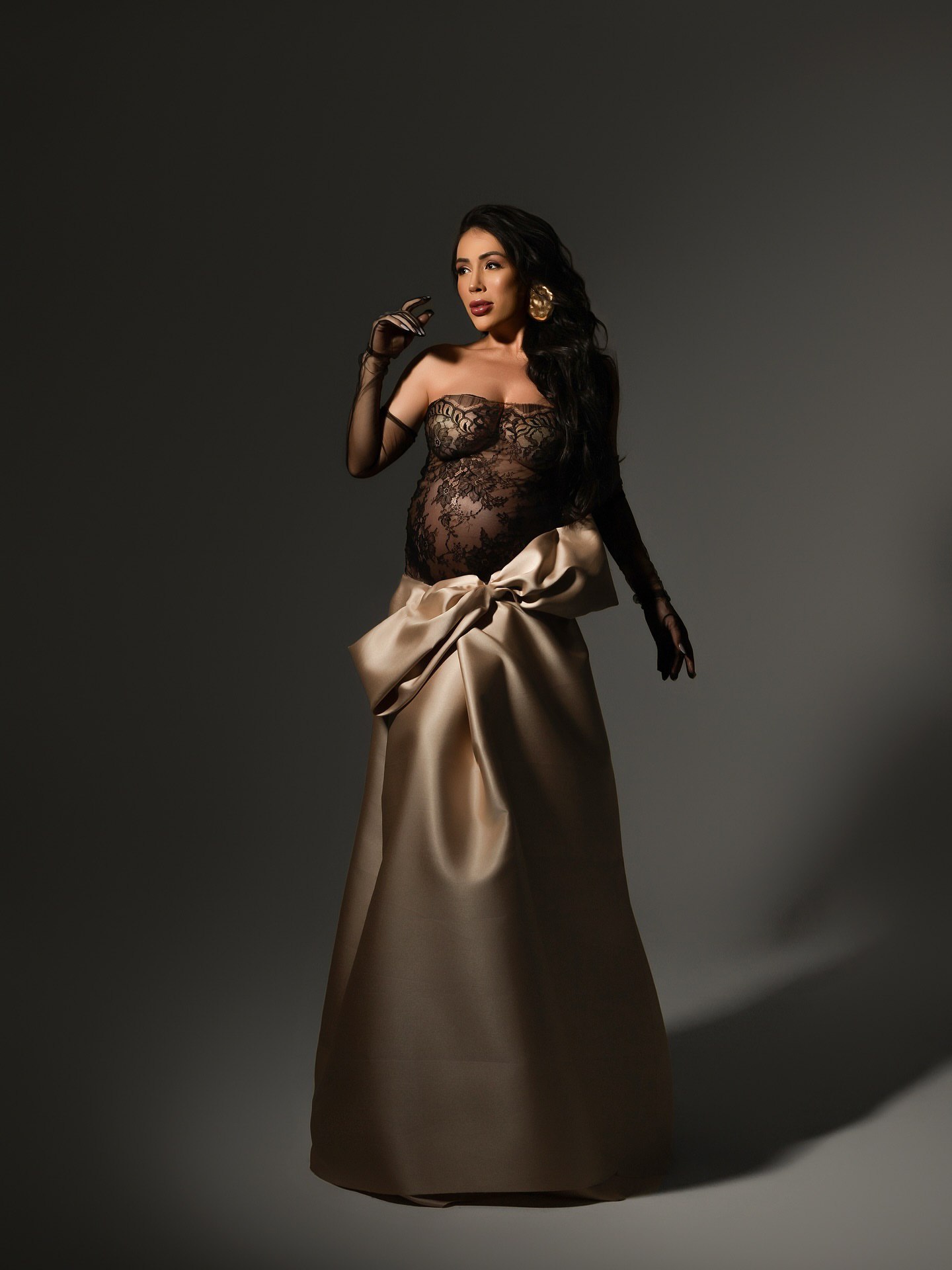 نیمتنه مرواریدی و دامن ماکسی بارداری