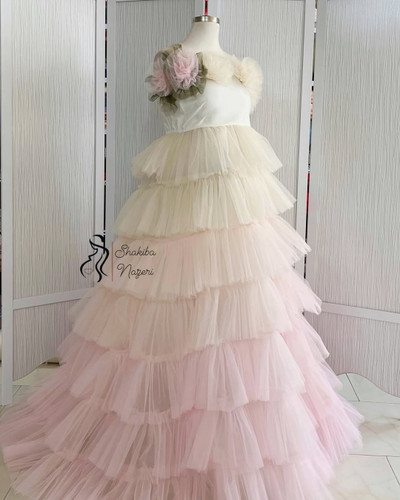 این مدل لباسها با حجم زیاد از تور نرم و لطیف طراحی شدهان و با چینهای لایهلایه و درشت، حس شکوه و رؤیایی بودن رو کاملاً منتقل میکنن.