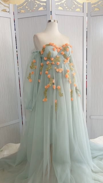 پیراهن بارداری تور بالاتنه تاپلکس گل کارشده پشت بندینک فری سایز مناسب عکاسی بارداری