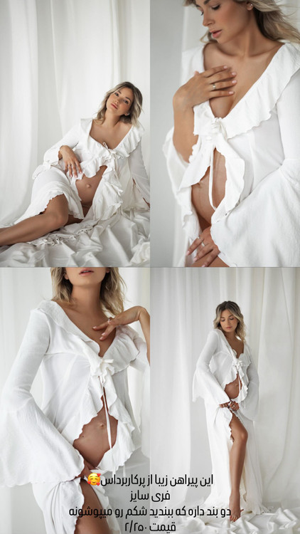پیراهن بارداری حریر لبه چین کمربندی