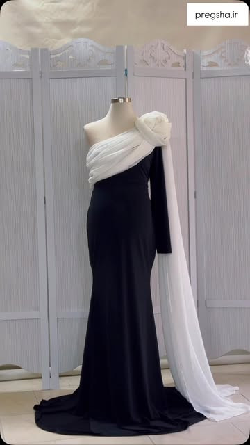 ماکسی بارداری گل سرشانه به همراه دنباله و گل فری سایز جنس گل و دنباله حریر