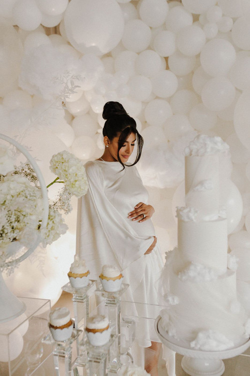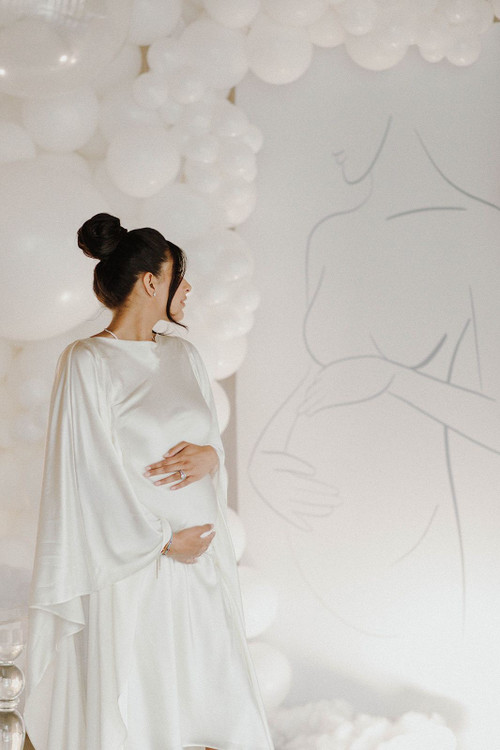 پیراهن بارداری مناسب جشن تعیین جنسیت و مراسم از کالکشن لباس بارداری آتلیه پرگشا