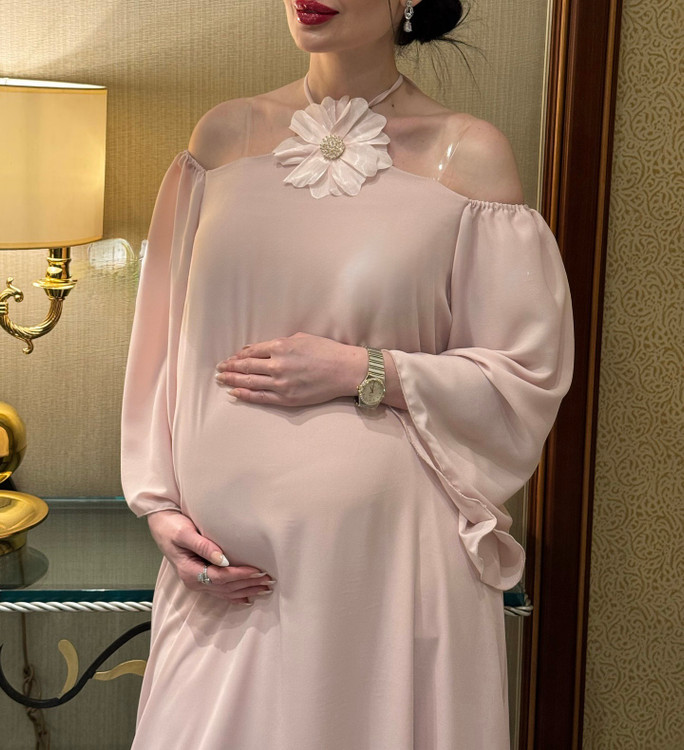 پیراهن بارداری مجلسی حریر از کالکشن لباس بارداری آتلیه پرگشا