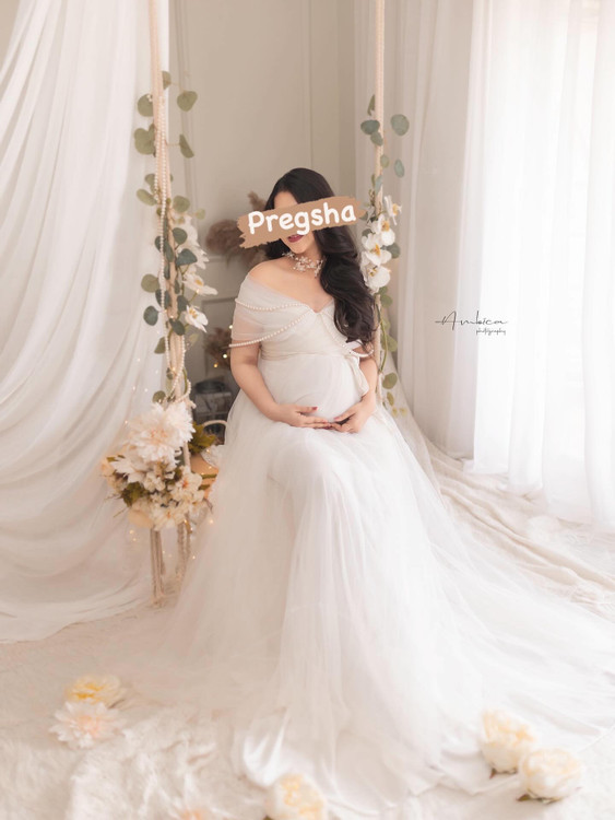 پیراهن بارداری تور با تزیین ریسه مرواریدی از کالکشن لباس بارداری آتلیه پرگشا