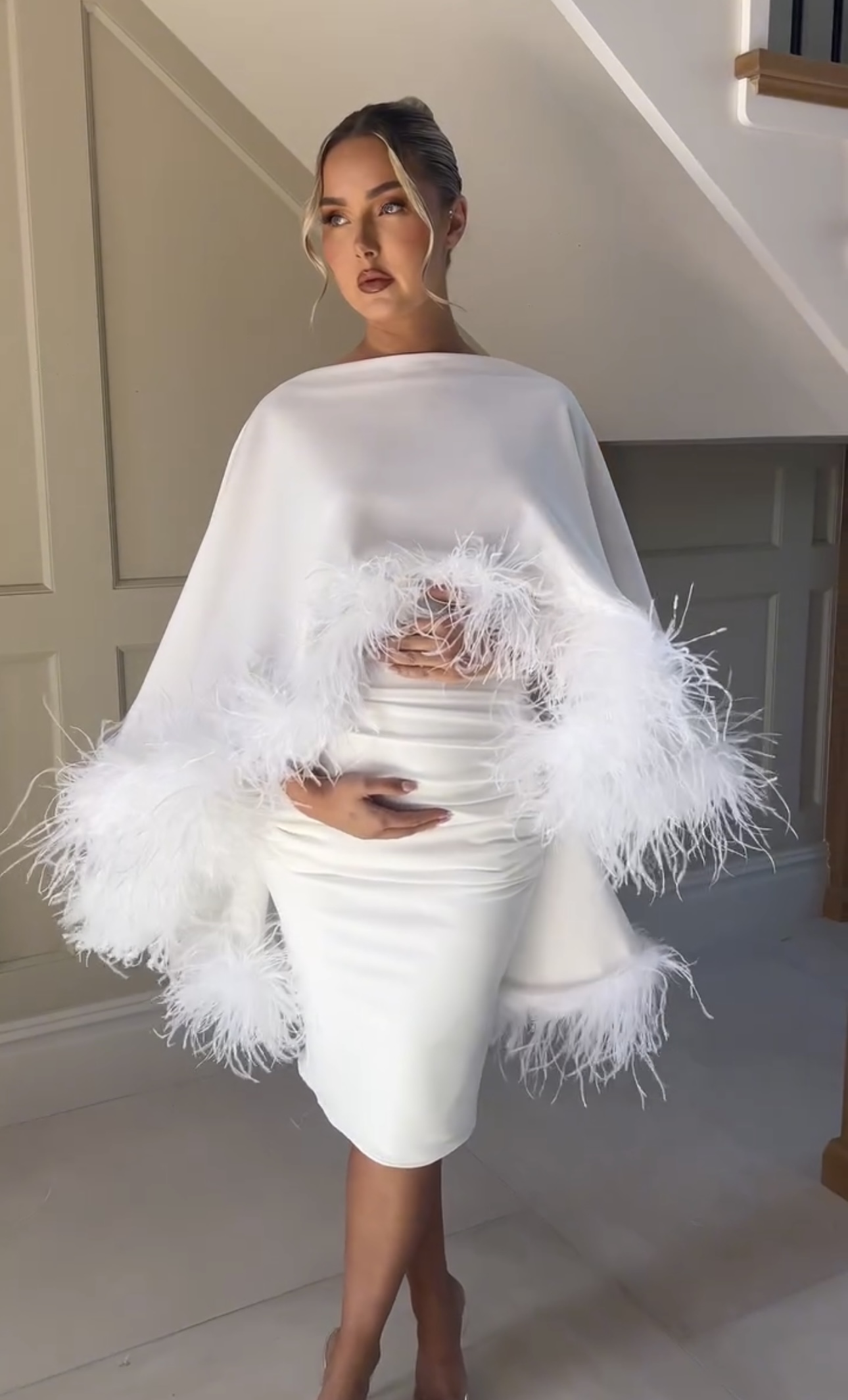پیراهن بارداری مجلسی به همراه شنل پر از کالکشن لباس بارداری آتلیه پرگشا