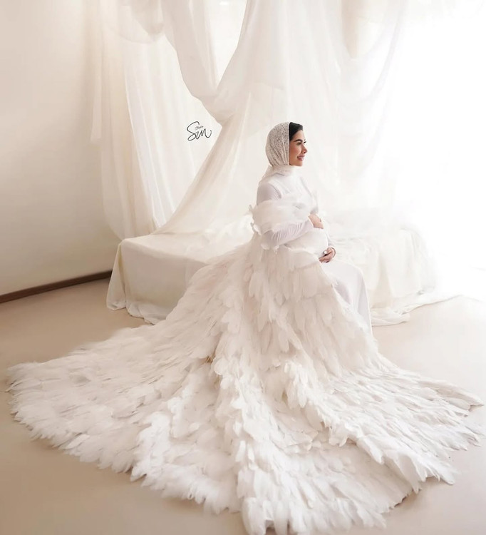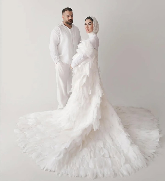 وقتی قراره بدرخشی، باید چیزی بپوشی که خودش یه اثر هنری باشه این پیراهن بلند، با پرهایی که با دست دوخته شدن، مخصوص یه بانوی خاص طراحی شده؛ زیرش هم ماکسی کار شده تا هم شیک باشه، هم راحت و پوشیده. ترکیبی از فاخر بودن، خاص بودن و ظرافتی که هر جایی دیده نمیشه