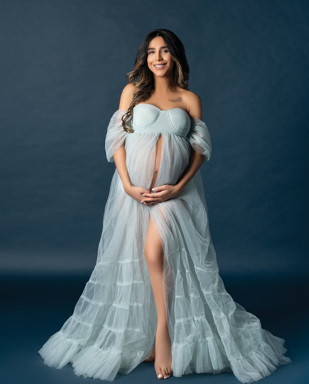 رویاییترین انتخاب برای عکاسی بارداری این پیراهن چیندار خاص با طراحی پشت بندینک، به صورت فری سایز دوخته شده و مناسب همه مادرای زیباییه که میخوان توی استودیو بدرخشن به سفارش استودیو پریا عزیز از دبی @pariya_uae و طراحی شده در پرگشا پارچهی سبک و دامن اون، حرکت و لطافت بینظیری به عکسها میده و جلوهای شاهانه خلق میکنه فری سایز – پشت بندینک از و سایت Pregshaa.ir