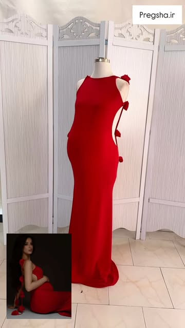 ماکسی که پشتش پر از گل رز خیلی خوشگل و خاصه از جلو پوشیده و پشت بازش جذابش کرده فری سایز