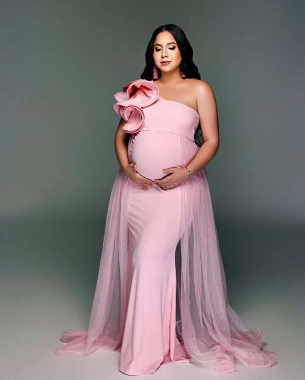 پیراهن بارداری دنباله تور گل سینه