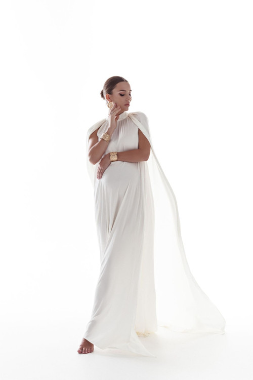 پیراهن بارداری ساتن از کالکشن لباس بارداری استودیو پرگشا