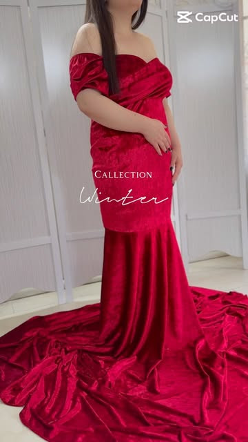 پیراهن مخمل ماهی با دنباله بلند از کالکشن زمستون فری سایز جنس کشی