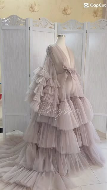 پیراهن بارداری تور چین طبقه ای روبدوشامبر فری سایز با بند کمری به تن فیکس میشه آستری مناسب عکاسی بارداری