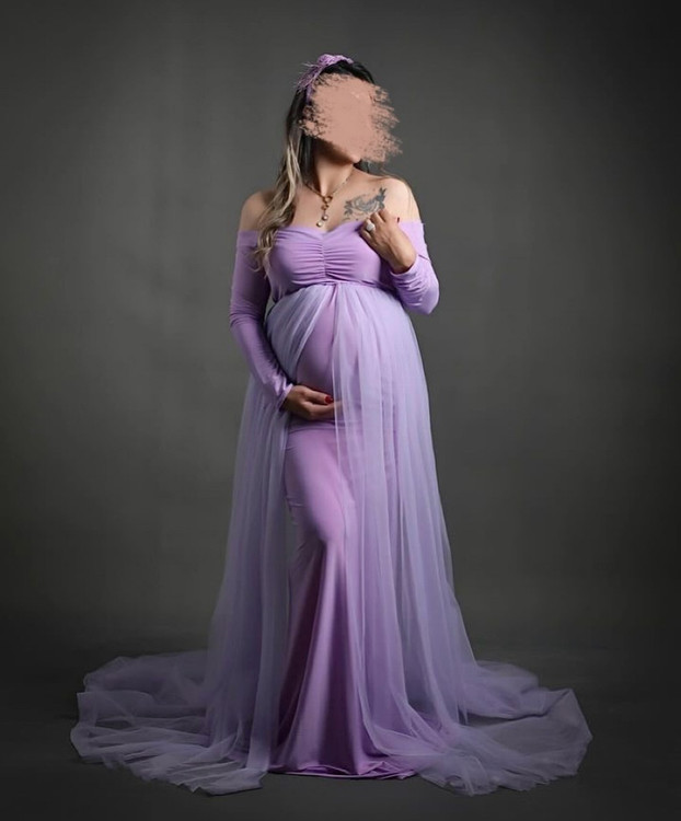 ماکسی بارداری با دامن تور در رنگبندی قابل فری سایز مناسب عکاسی بارداری