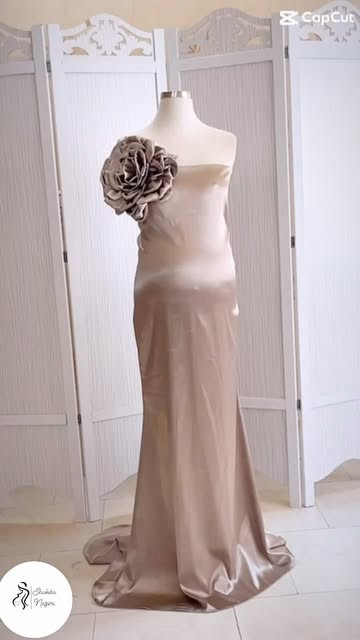 ماکسی ساتن بارداری پشت بندینک فری سایز دررنگبندی قابل به همراه گل روی سینه