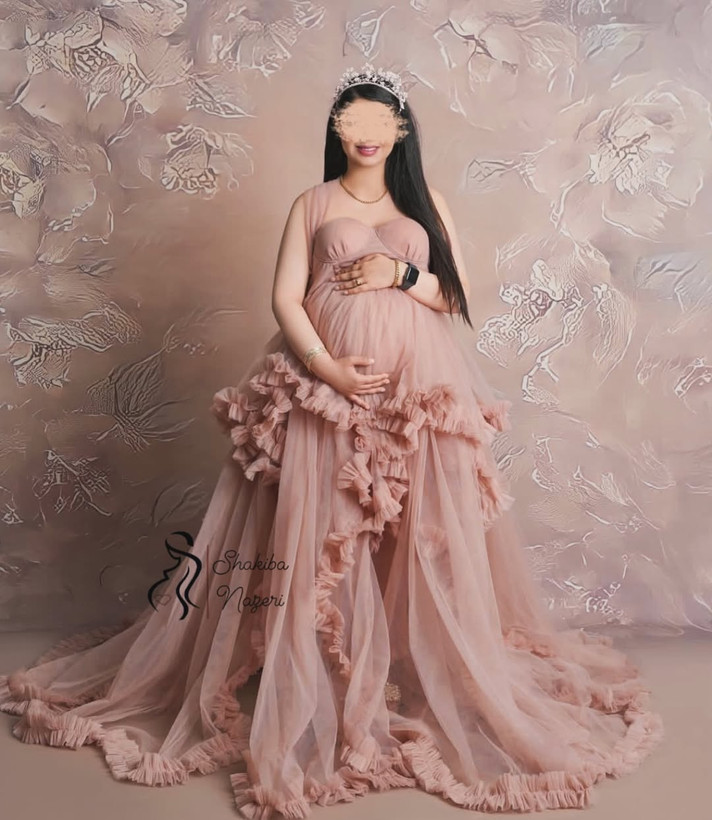 پیراهن چین بارداری آتلیه فری سایز پشت بندینک در رنگبندی کاپ در دوسایز